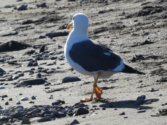 When I open my eyes, she takes a step back but keeps the alarm going. Does this gull have a snooze button? I close my eyes again and can hear her walking on the pebbles. Eventually she shuts up. Then I hear her wings as she lofts herself over me and lands on my kayak. That’s it. I’m up.