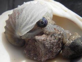 A live paper nautilus, or argonaut, is so rare to see that the field guidebook we used for years in Baja only had a picture of the empty shell. It’s a single-chambered white to opaque crescent with black markings. Because it does seem fantastic that a kind of octopus swims around wearing a fragile curved hat, I’ve had clients insist I was completely making them up.