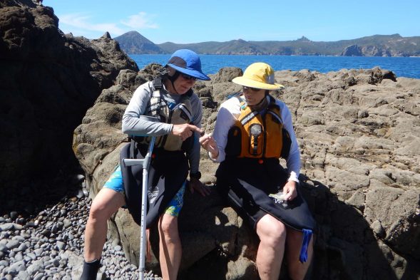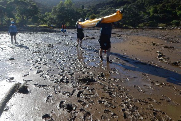 We explored up the west coast to Miners Head, from which we could see The Needles, the Barrier’s northern point. The forecast chased us back to Fitzroy, where some played in the building conditions, and we all took shelter in the kitchen hut (New Zealand knows how to make camping easy!). Many of us also took shelter in the convenient pre-mixed Gin & Tonics Tammy and Mike kept bringing from the nearby Fitzroy store.