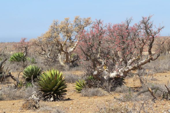 I stopped often to photograph. After one foray I was waved to a stop by some soldiers who looked in the back of the truck and wanted to know what I was doing wandering in the desert. It’s their job to impede any movement of illegal substances. I grinned sheepishly and admitted to being a plant nerd, then proceeded to blather on about the blooming torote around us. They shook their heads, smiled paternalistically, and waved me on. I actually like these interactions. Mexican soldiers are always respectful. They’re young men doing their required service, usually from mainland, stuck in the remote outback of Baja, often bored, sometimes curious, and probably amused by the silly things gringos do.