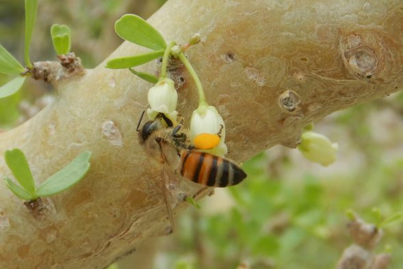Another hour and a half brought her to San Basilio, a cove 22nm north of Loreto and well outside the Park, where she pulled the kayak up and enjoyed the refreshing breeze to go explore the unoccupied beach for lizards, desert flowers, and other life forms.