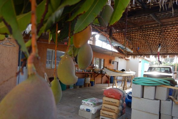 The music of Loreto this morning is the resonant thud of mangoes falling on rooftops. On our patio they plop solidly. Breakfast is a six-mango-smoothie. It could only be more local if they fell into my glass.