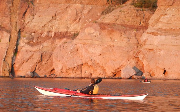 Rocks and sun also featured themselves on our Natural History trip. A sunrise paddle gave opportunity to see geology in a new light, including some impressive volcanic dikes where the red “toasted” rock around the intrusion itself is clearly visible.