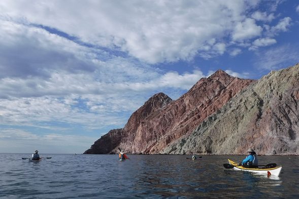 The Loreto National Marine Park encompasses 5 major islands. Isla del Carmen is the largest, at about 60nm around, and has the most variety. The eastern side faces the open sea, the distant islands of Santa Catalina and Monserrate, and the brilliant Baja sunrise. The western shore faces the Sierra la Giganta, a sheer mountain range rising from the sea nearly a mile high.