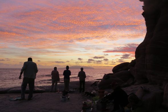 This trip launches from a beach 15 miles south of Loreto, and takes out at a fish camp north of La Paz on a genuine Baja dirt road. In between is freedom. Life as a band of sea gypsies. Enjoy creative geology, 5-star beaches, some challenging headlands, the occasional cave and isolated fishing village, shy pockets of palm trees, and a typical tailwind. Kayak sails are available to rent for the trip, complete with instruction.