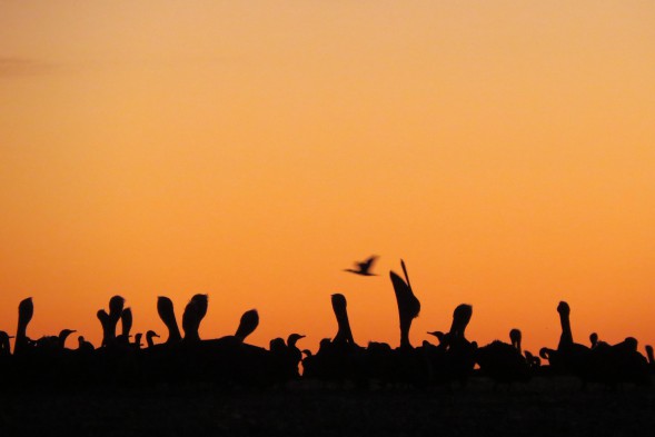 • Pelicans watch kayakers pass